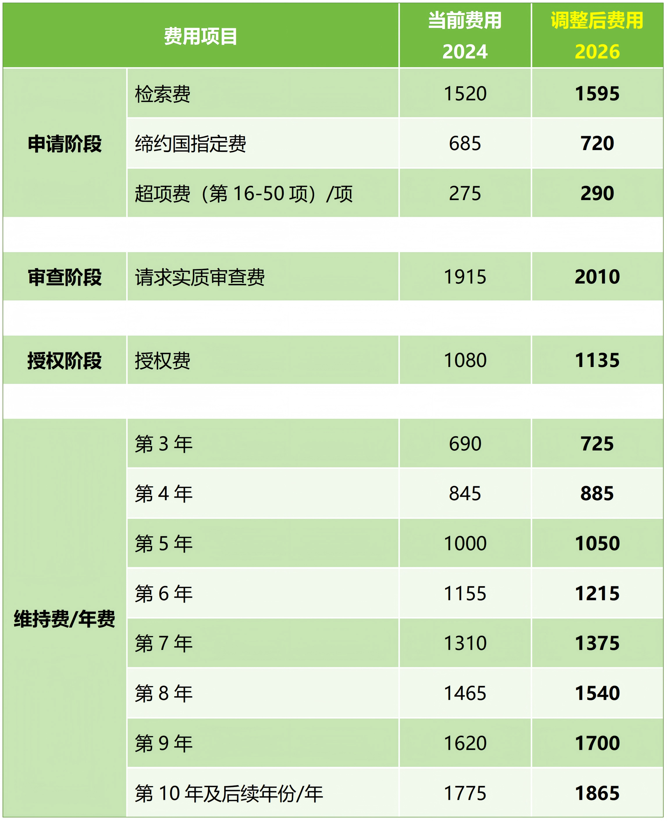 根据欧洲专利局(EPO)在20251211发布的行政理事会决定,多项专利官方费用将上调,新的官方费用收费标准将于202641生效。